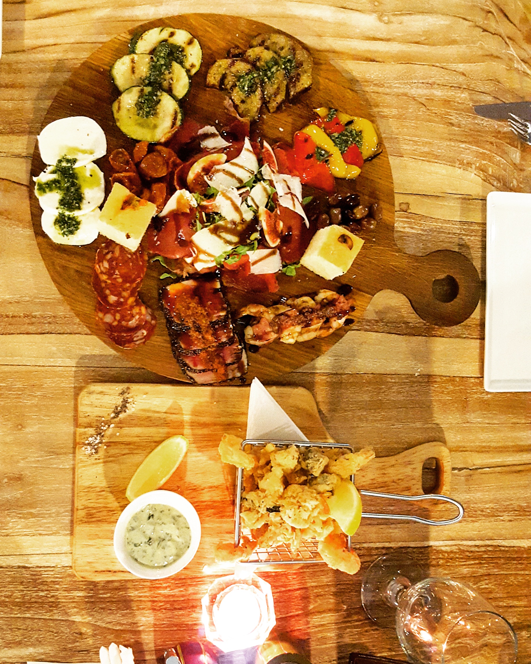 We started our dinner with a huge appetizer sampler, called the Antipasto Verdure. It includes spicy salami, rocket and parmesan, grilled vegetables, olives, focaccia, prawns wrapped in bacon, pesto with buffalo mozzarella cheese, olives, beef bresaola with figs, and sesame seared tuna. All of the elements on the plate were so well thought out and have such a good story behind them. My favorite was the Ahi Tuna which is seared with a black sesame crust and drizzled with a sweet balsamic glaze, which I was later told that by Chef Gladwin that it’s an 8-year old aged glaze! This Chef really puts thought and detail into his creations. This platter alone could fill you up! We also had the Calamari, Shrimp and Clam Basket, which is fried in a light, crisp batter and served with a delicious creamy sauce.
