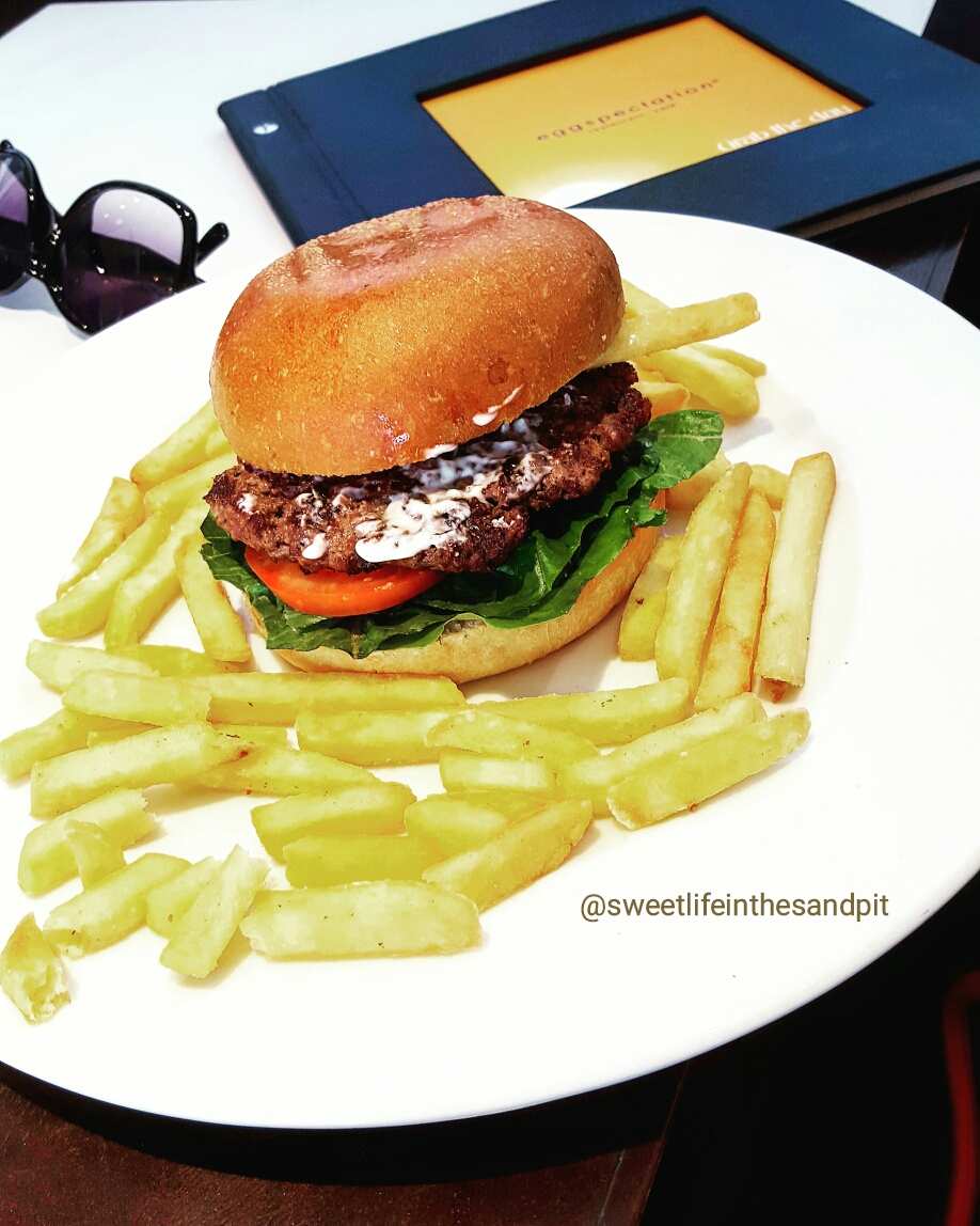 Eggspectation is a cool restaurant with an easy-going, beach-y vibe. It reminds me of a lazy LA morning, where you go down to Santa Monica to enjoy the beach and then stroll over to a local breakfast cafe when your done with the sun. Okay, maybe I’m a bit nostalgic for home, but this place might just be a bit of a cure for my homesickness. I love the way its set up– it’s quite big on the inside, but also has outside seating– perfect for the coming months when the weather will be cooler. It fits so perfectly within the area of JBR that it’s located in. Although the name might make you think that its a breakfast place, their menu is huge, they have everything from crostinis to pastas, burgers and steaks to flatbreads and crepes. They, of course as the name suggests, also have a ridiculously huge variety of egg-based dishes and other breakfast items.