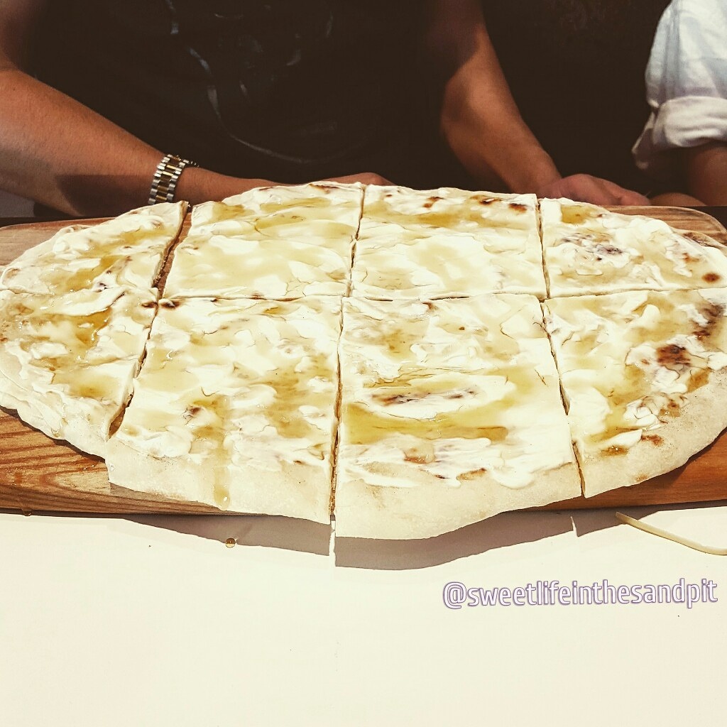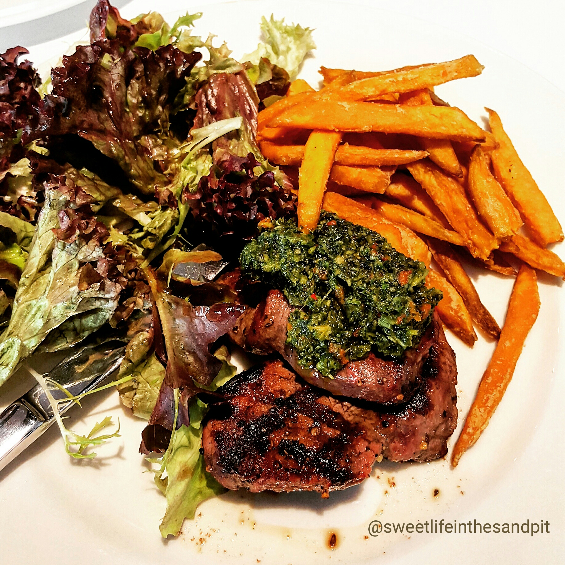 Since it was lunch time, I didn’t want to go for one of the egg dishes, even though they looked sooo amazing (and I’ll definitely be back for them soon), I chose the Fiery Chimichurri Steak, while my husband opted for something sweeter, the Cream Cheese ‘n Honey Flatbread. My filet mignon was so delicious and tender and cooked perfectly to my liking. It came with a chimichurri sauce, a light salad and some amazing sweet potato fries. It was so filling, I had to pack most of it for take away. Seriously, not kidding about the portions! I didn’t get a chance to try a bit of the hub’s flatbread, but he loved it!