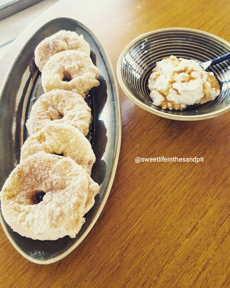 My husband’s meal was very hearty so by the time the beignets came, he was already full! I had a bite of it and it was really nice– a beautifully battered apple, sprinkled with cinnamon sugar. It came with a ricotta and organic honey mixture. Since we were heading to the beach right after breakfast and we didn’t finish our breakfast desserts, they were so kind to send it to our room, so we could enjoy it after we came back from the beach.