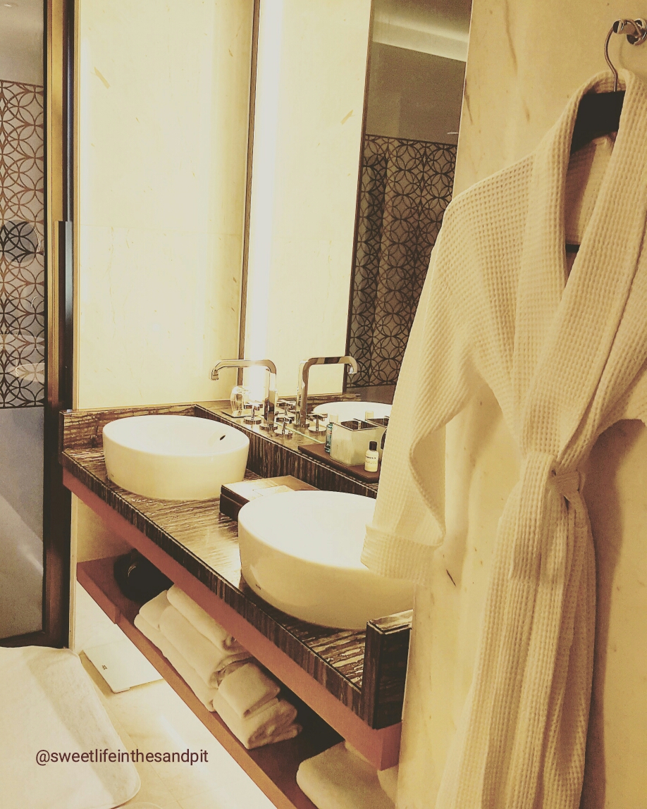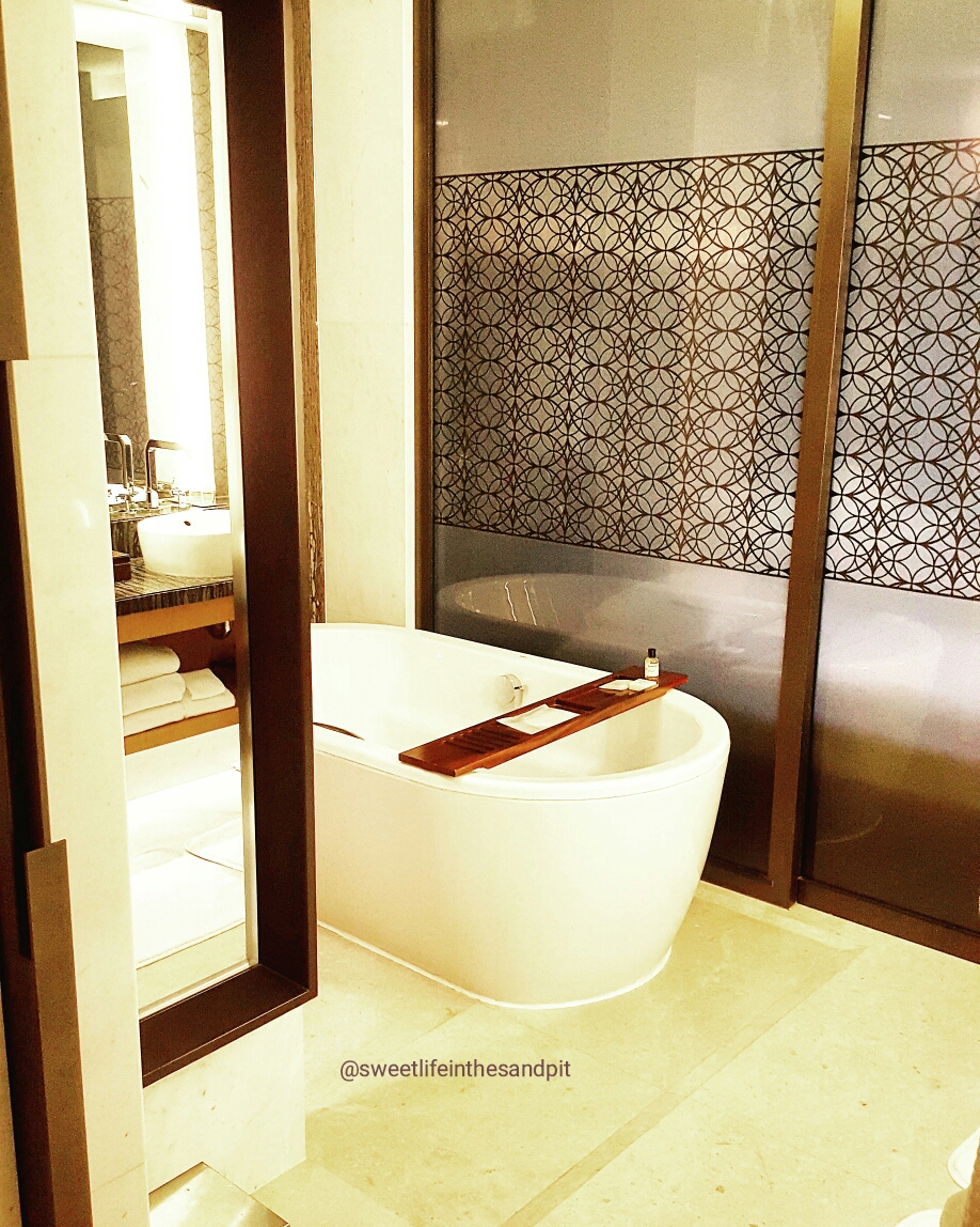 We went back to the pool area, so he could play in the toddler pool. We spent a good couple of hours by the pool, before heading back to the room to wash up, take a quick nap and pack up our stuff. Speaking of wash up– the bathtub is wonderful! I put Khalifa to bed and took a long bubble bath. The amenities they provide smell so great and I loved the bath salts! Make sure you make use of the bathtub during your stay.