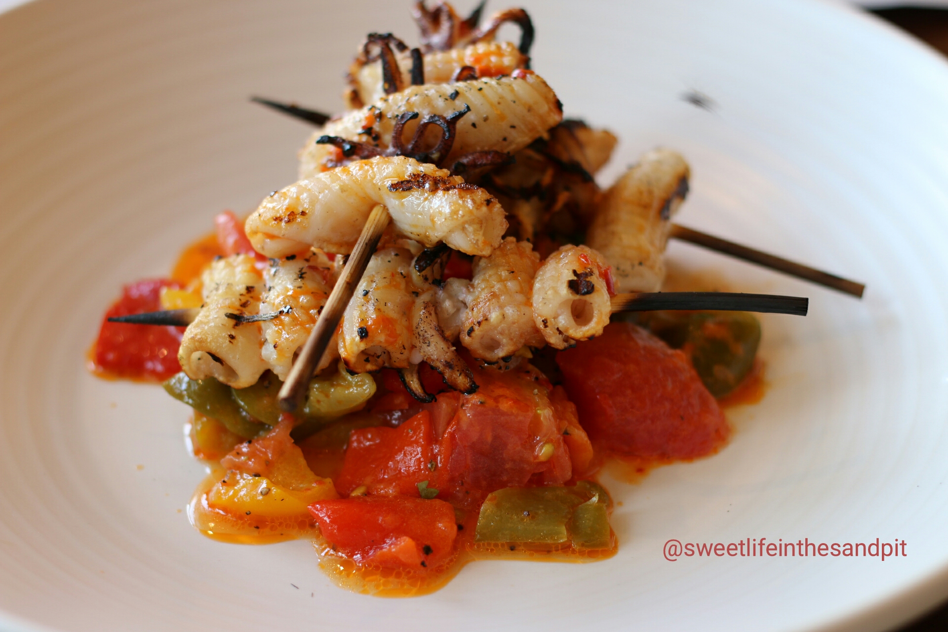 For starters, we shared the Grilled Calamari, which is a great summer dish. The calamari is chargrilled on skewers, and laid on a bed of cold bell peppers and tomatoes. The squid is tender but still has an aromatic smokey flavor.