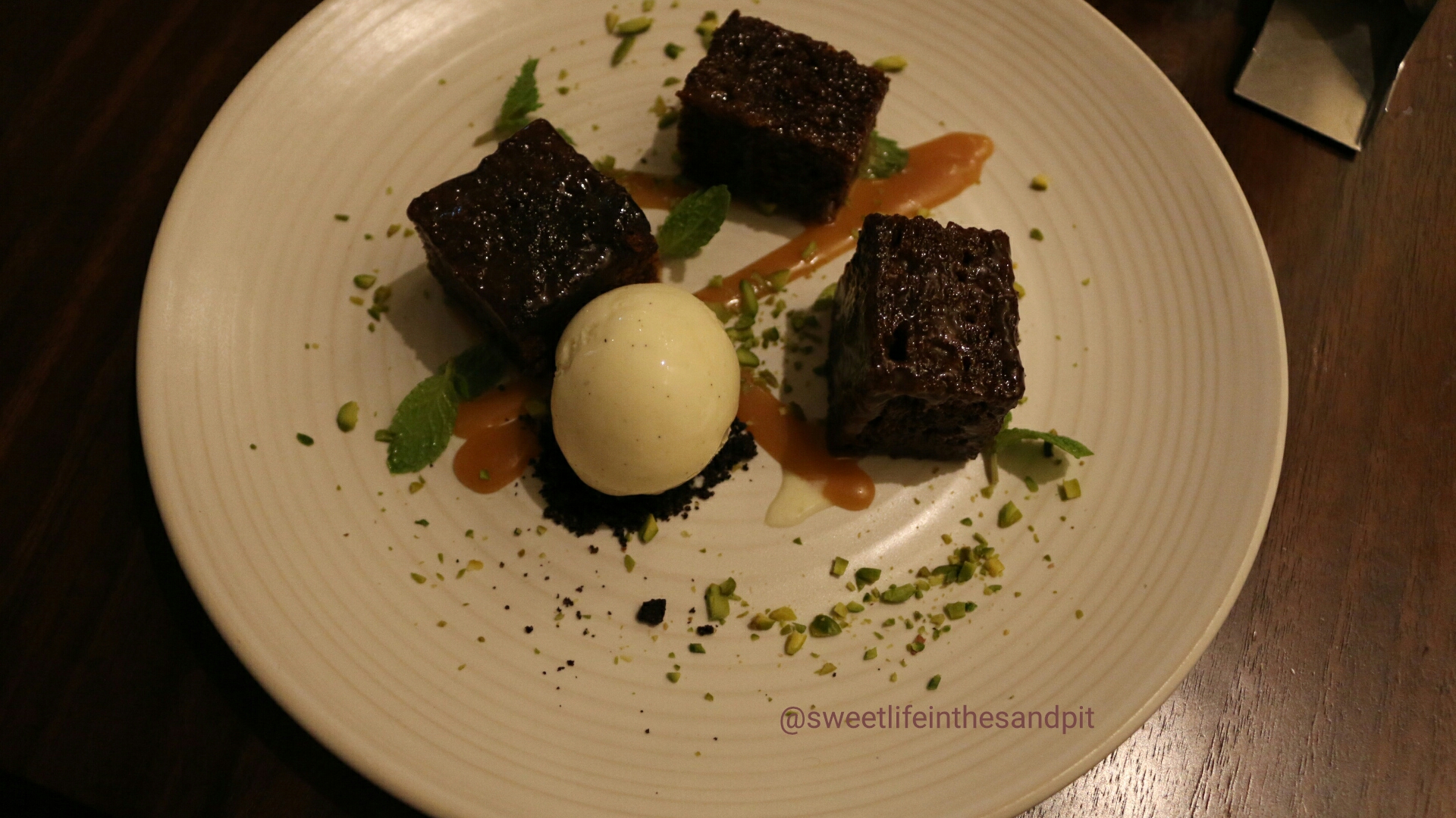 After letting ourselves digest for a bit, we ordered the desserts. I got the Sticky Cake while Mohamed got their Kunafa. I didn’t have a taste of his kunafa because he loved it and didn’t save me any, so I’m guessing it was really good! I also loved my cake which came with a chocolate ganache, a delicious caramel sauce and a scoop of vanilla bean ice cream. Although it seems small, its quite heavy so save room for this bad boy– it’s delicious!