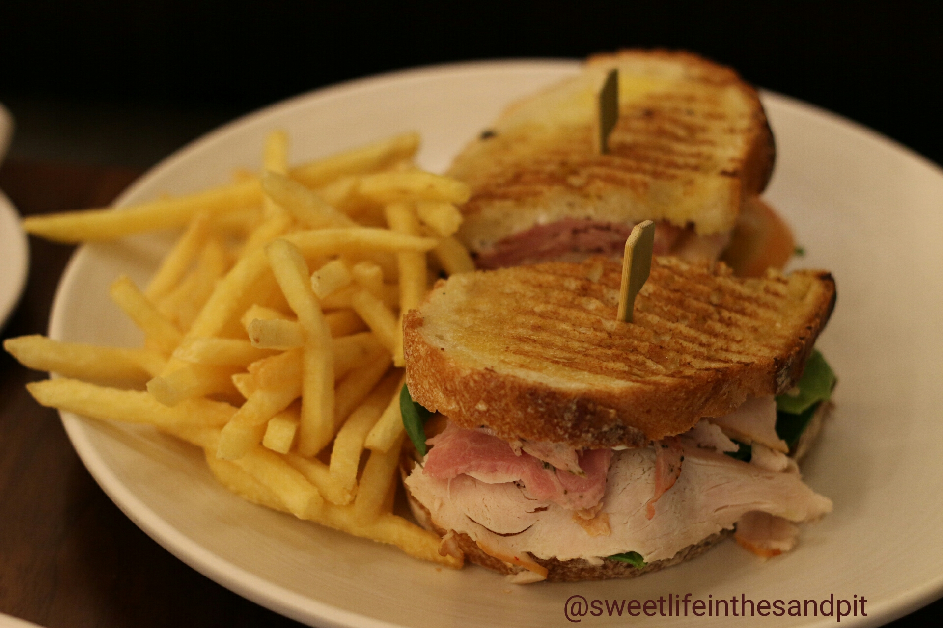 For mains, I had the Turkey Sandwich and my husband, Mohamed, had the Alaskan Crab Pasta. The sandwich was packed with flavors; along with turkey meat it had avocado, spinach leaves, tomatoes a creamy blue cheese dressing, and a batch of fries on the side. They were very generous with the portion and even though I was hungry, I practically got full off of just half the sandwich.
