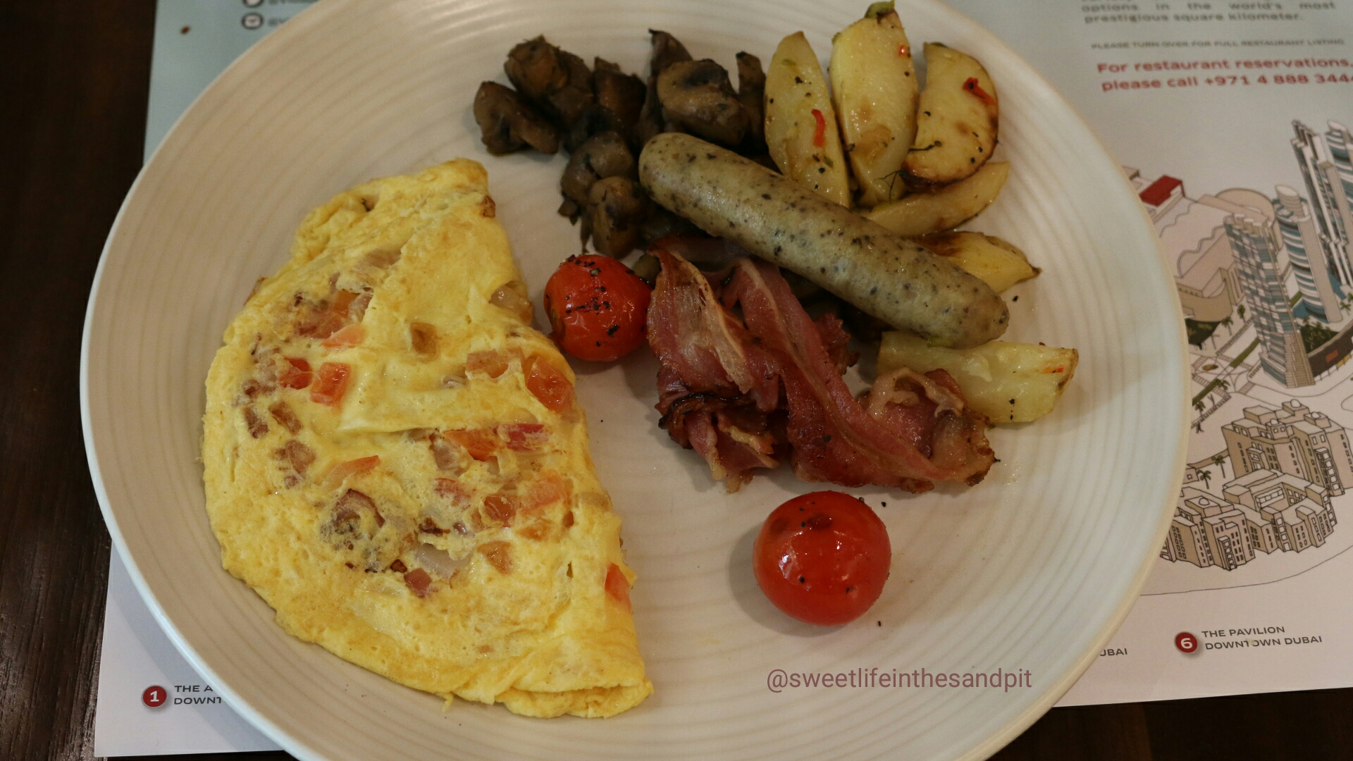The omelette dish was actually quite a large, as it comes with side of beef bacon, roasted tomatoes, sautéed mushrooms and sausages. You can get pretty full just off of that one dish.