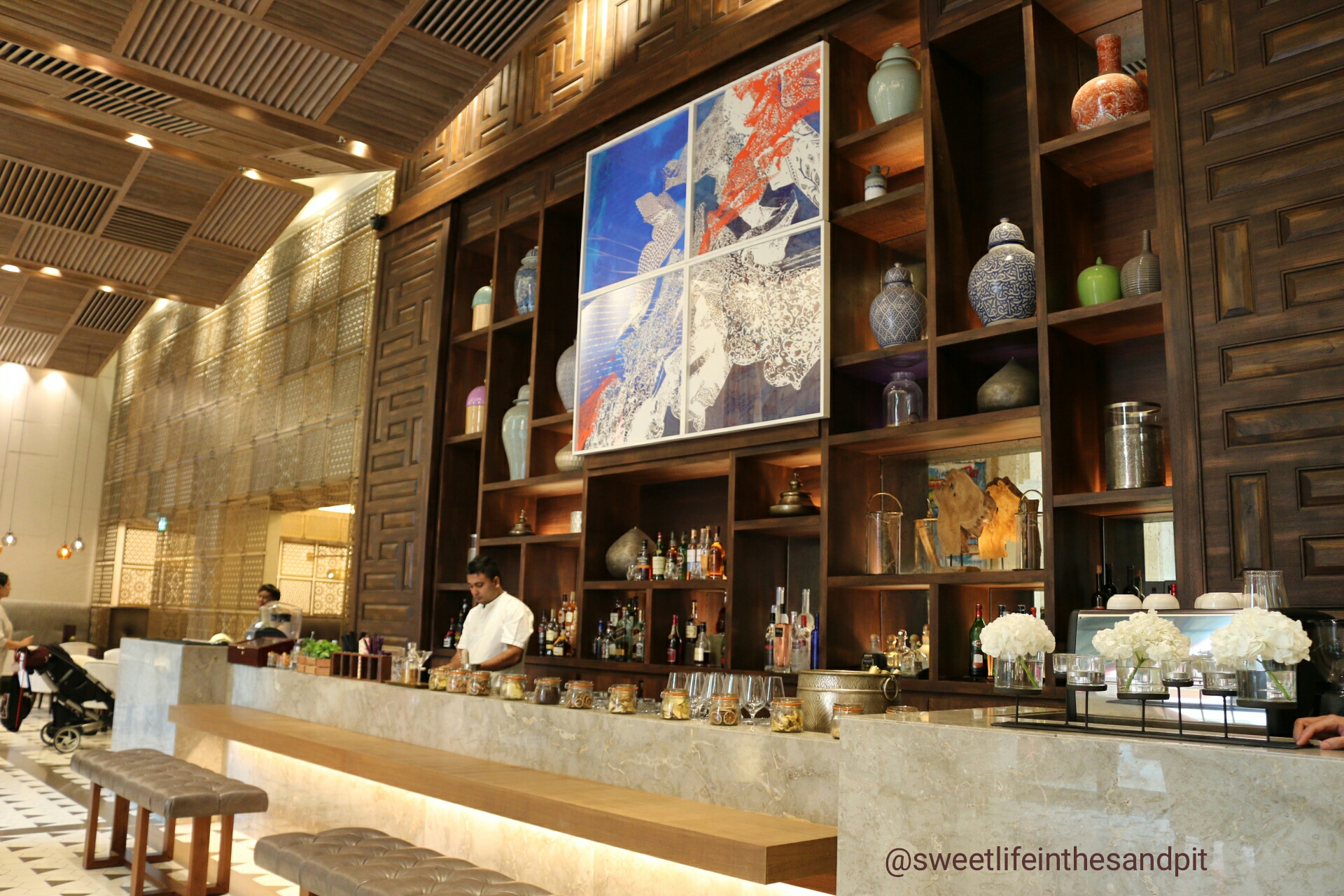 Boulevard Kitchen is located, just like the name states, right on the Boulevard in Downtown Dubai. There’s several different seating areas, indoors, semi-indoors and an outdoor area that has an incredible view of Downtown and Burj Khalifa.