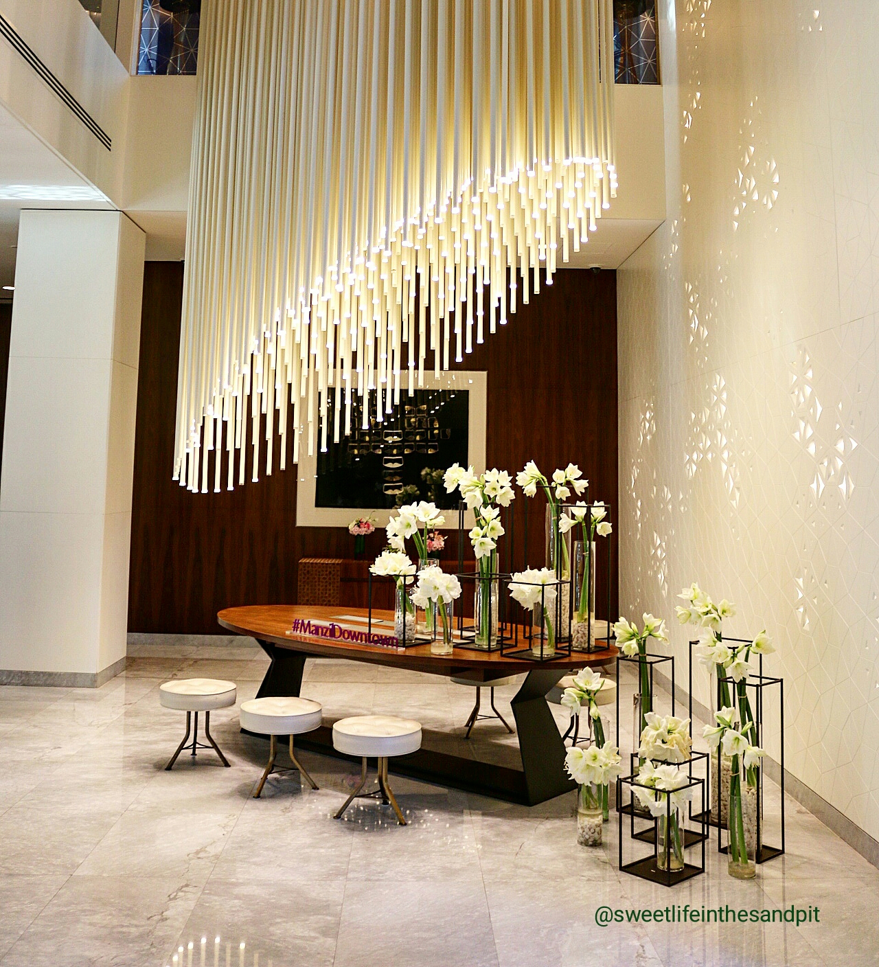 We pulled up to the valet and they swiftly helped us with all of our luggage. The decor and flowers of the lobby are gorgeous. They even have a table filled with Arabic sweets, just like any good Arab host would have. We were welcomed with lemon and mint juice.