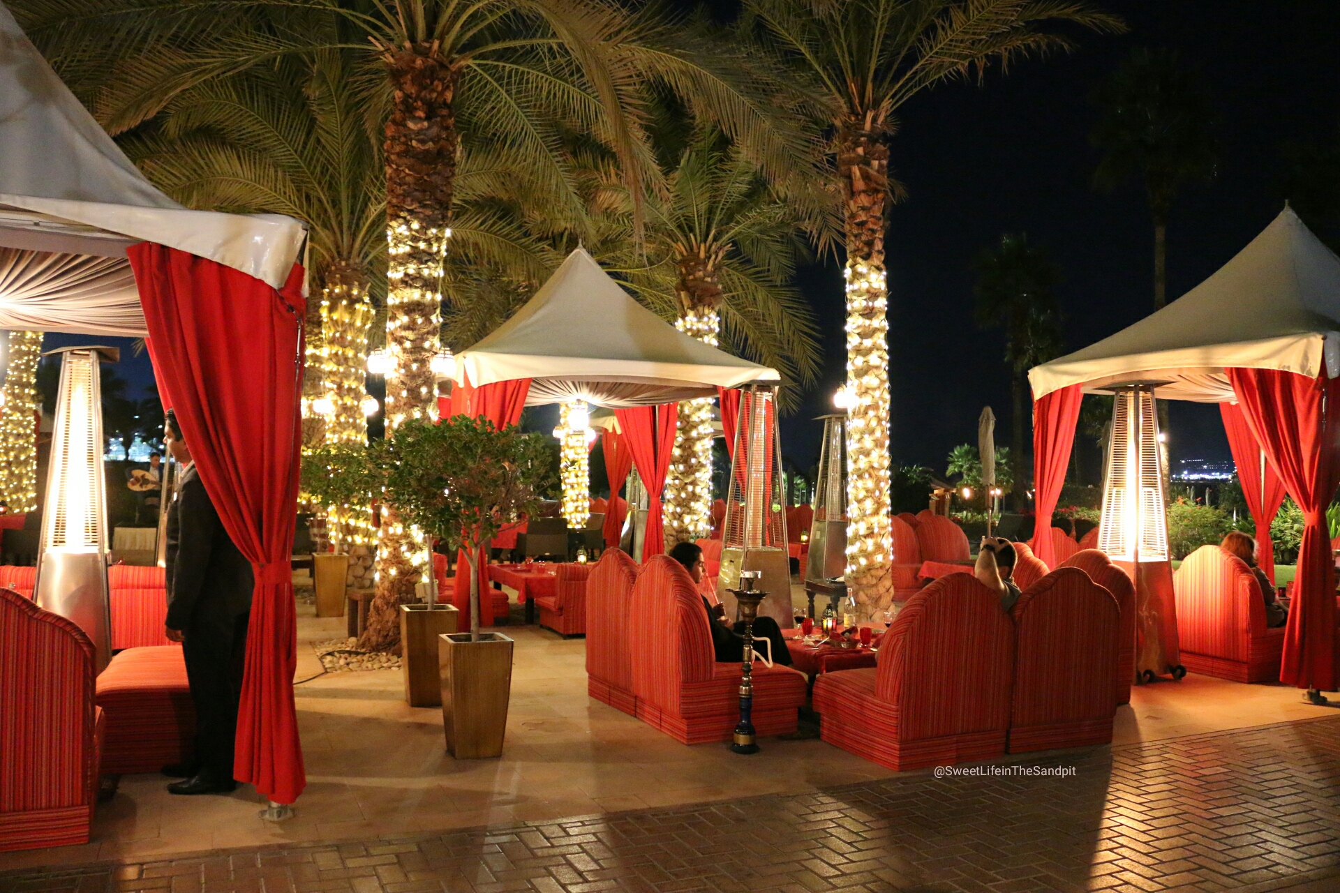 The restaurant is outdoors and the ambiance is spectacular. There are palm trees all over, and its beautifully lit-up. The tents are semi-private, very spacious, and can easily fit about 8 people. After taking our seats, we were asked what we’d like to drink.