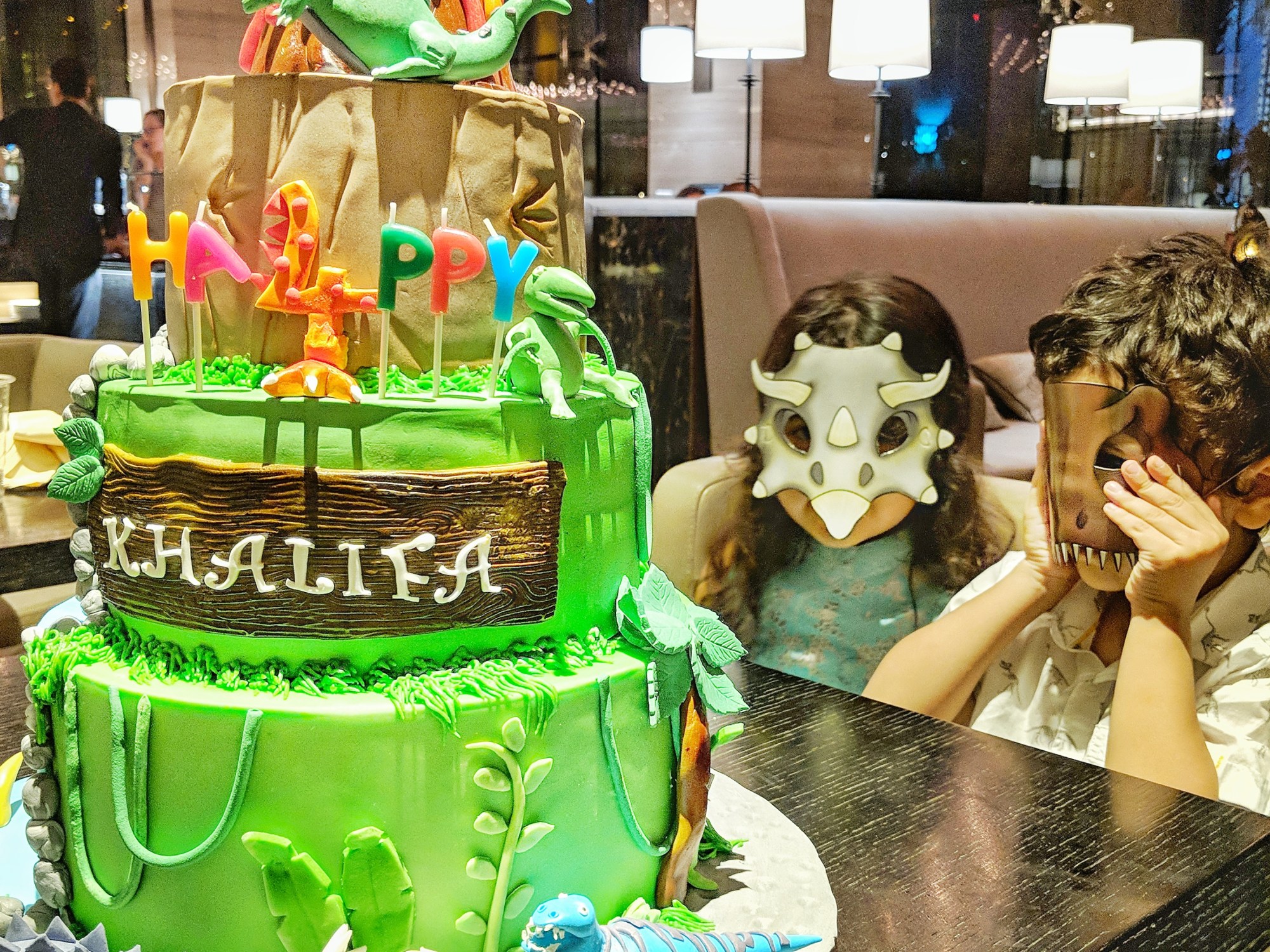 Yes, they do cakes. No, I’m not just talking about your basic buttercream roses and ‘Happy Birthday’ written in cursive. The hotel’s cake artist Nickola is INCREDIBLE at what she does. She made the exact cake that we wanted– a 4-tier dinosaur cake (oh yeah, that was the theme, by the way!), filled with plenty of foliage, hand-made dinosaurs of all kinds, a dinosaur-themed ‘4’ and a volcano to top it off.