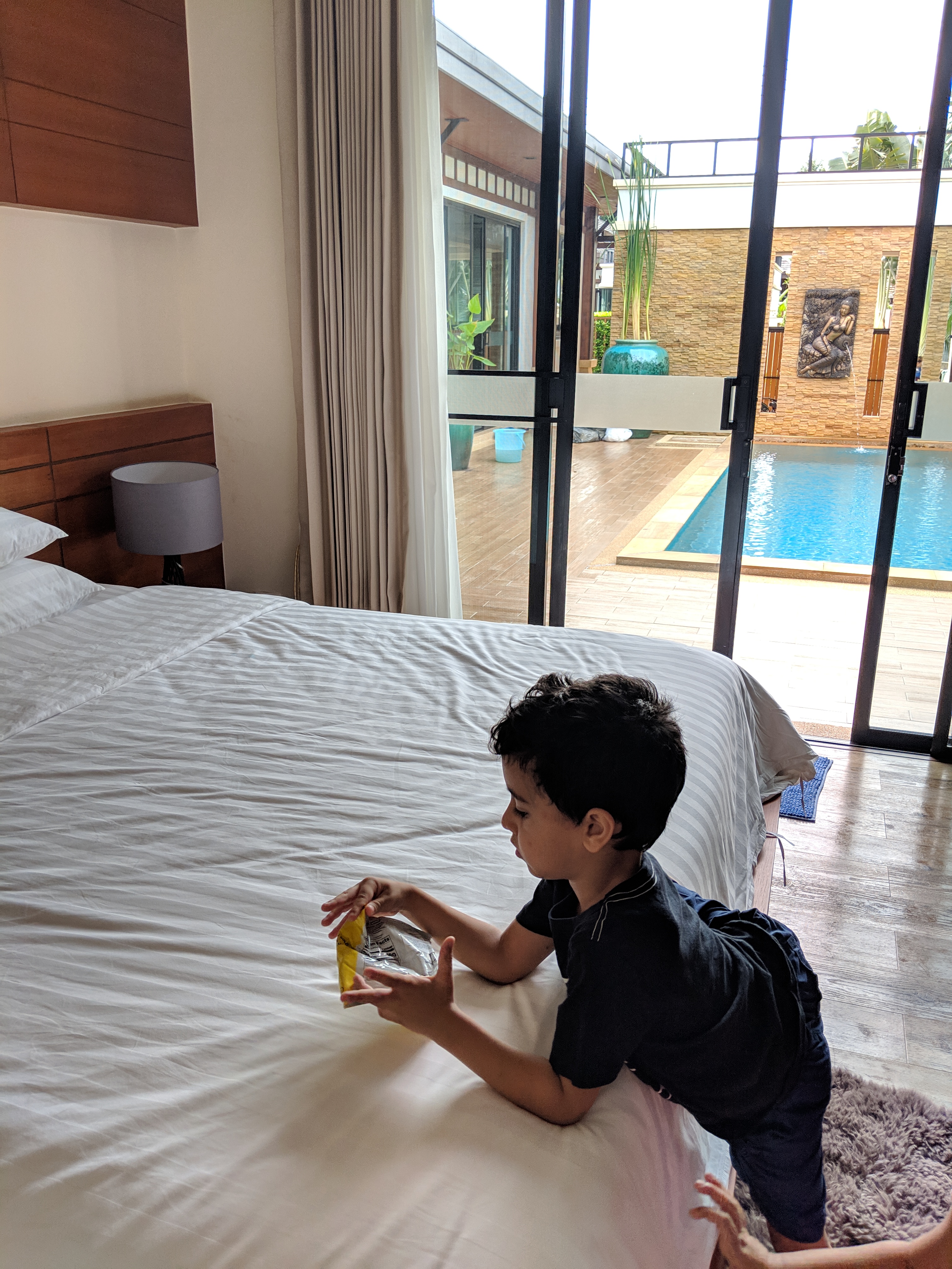 The pool is a proper pool, not just a small plunge pool, as in most hotel villa properties. Its quite deep as well, so get floaties for your little ones (which are easy and cheap to get in Phuket, you don’t need to carry it with you in your luggage).